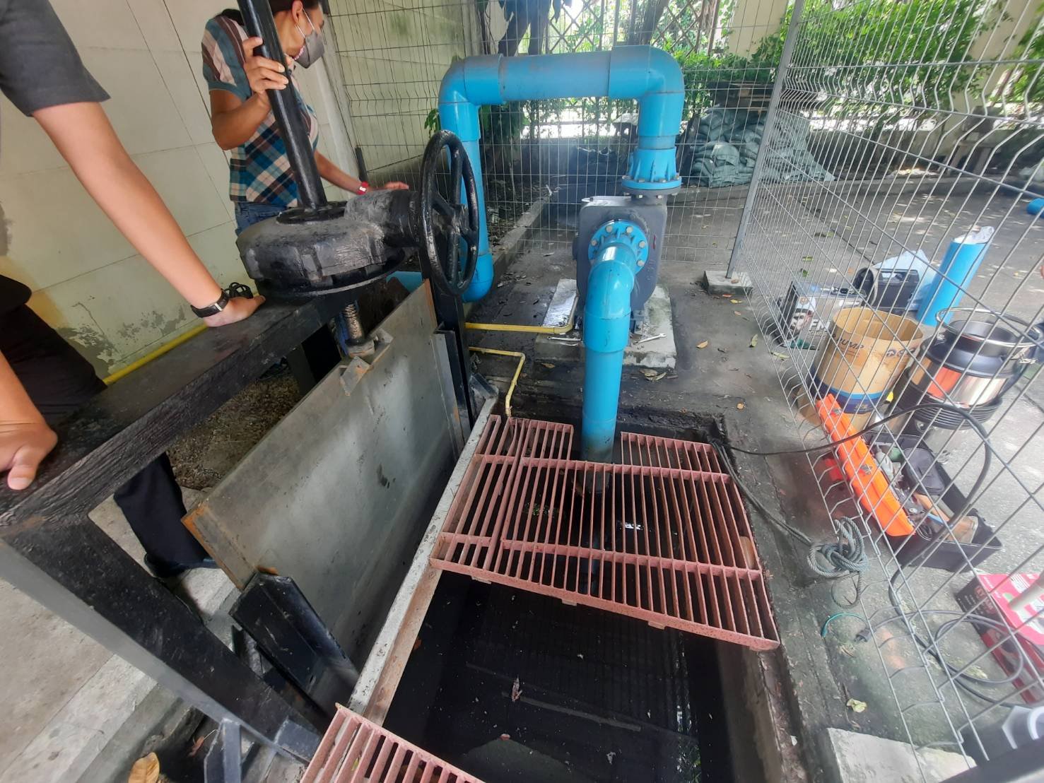 เนื่องจากปั๊มระบบเดิมของลูกค้าเป็นปั๊มเซล์ฟไพร์มิ่ง ท่อขนาด 6” 15HP โดนร้องเรียนว่ามีเสียงดังรบกวนขณะสูบน้ำ ทางนิติบุคคลหมู่บ้านจัดสรรจึงต้องการเปลี่ยนเป็นปั๊มจุ่ม