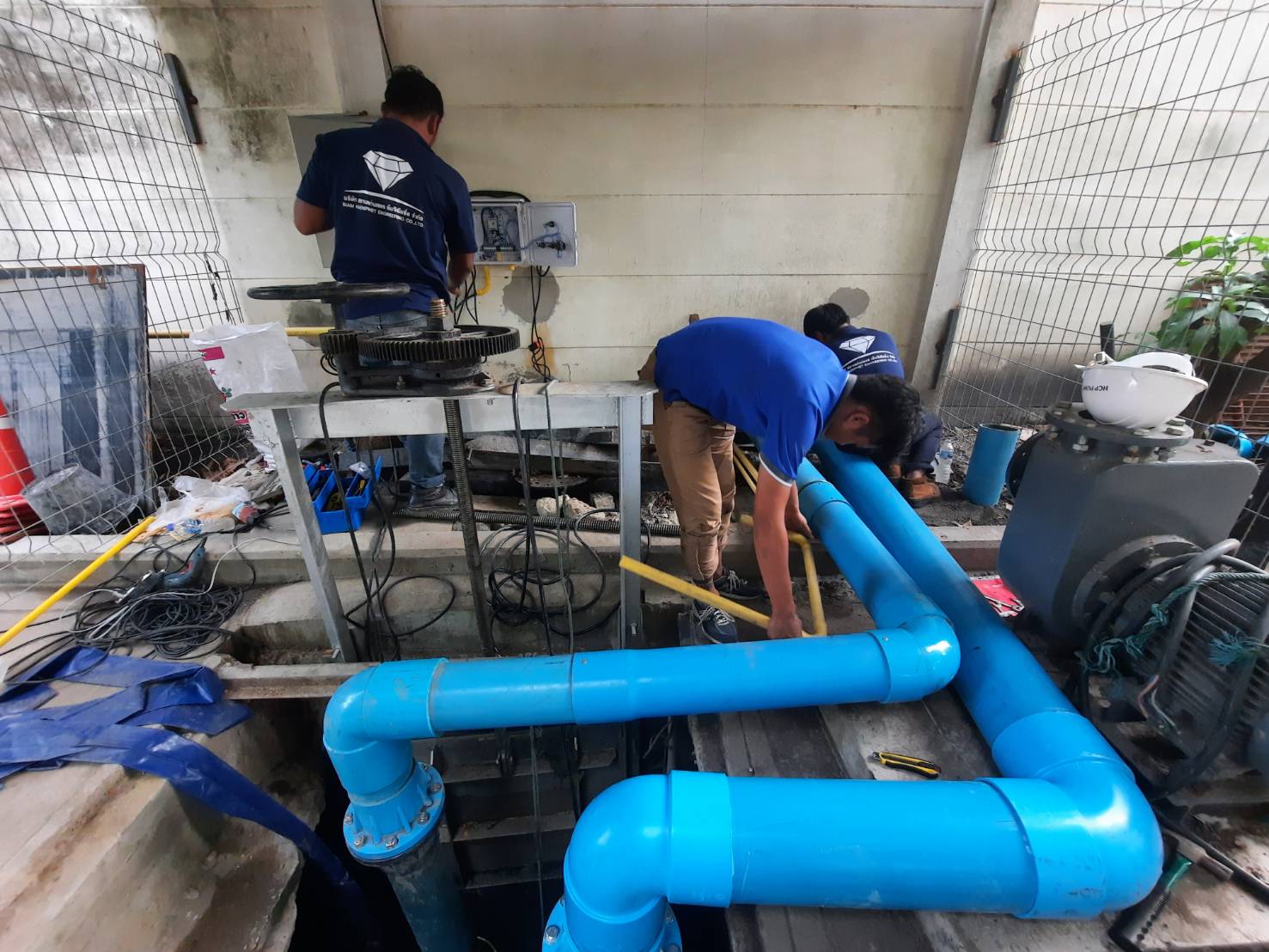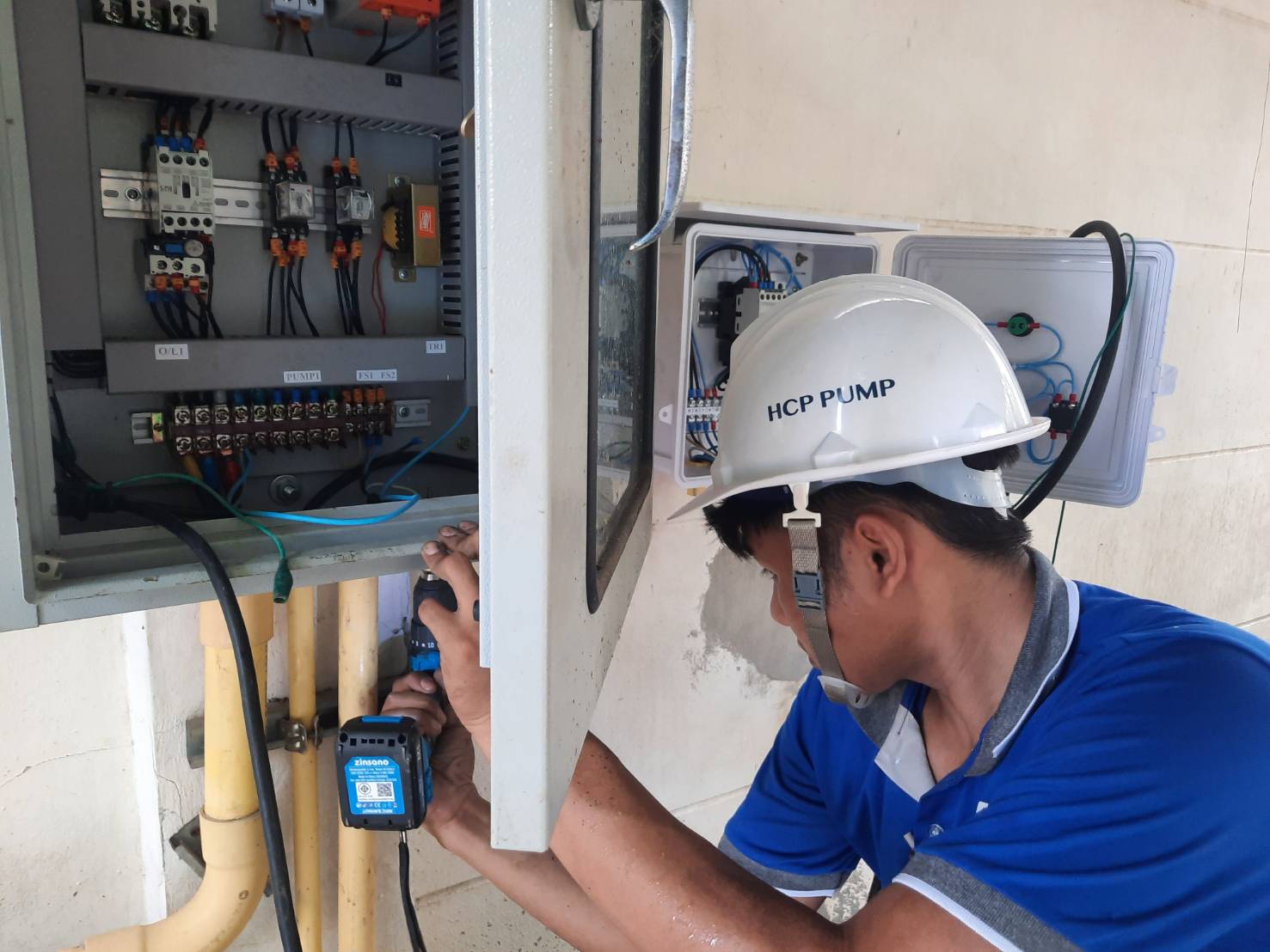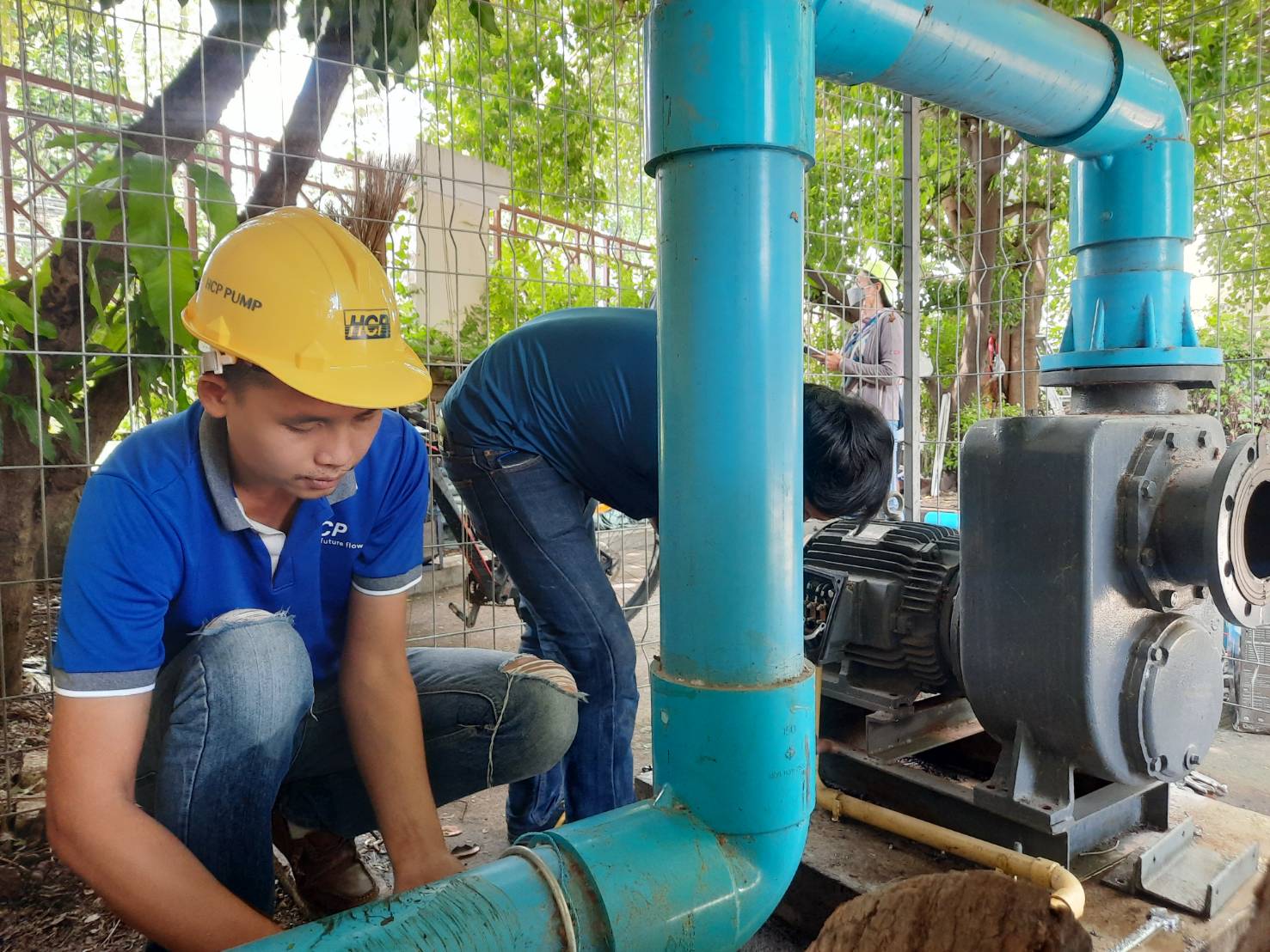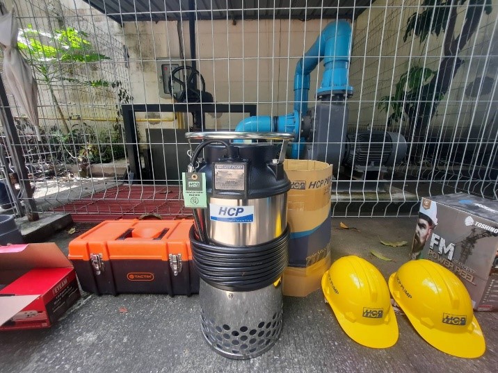 โดยการติดตั้งปั๊มน้ำ HCPPUMP รุ่น L-63A 6”3HP และ ปั๊มรุ่น L-200A 8” 7.5HP ควบคุมการ เปิด/ปิด ปั้มอัตโนมัติด้วย Folat Switchโดยการทำงานเมื่อระดับน้ำสูงถึงระดับที่ตั้งใว้ Folat Switch จะเปิดการทำงานปั๊มรุ่น L-63A 6”3 HP ก่อนเป็นหลัก และหากปริมาณน้ำฝนยังสูงขึ้นเกินระดับ Folat Switch จะสั่งเปิดการใช้งานปั๊มรุ่น L-200A 8”7.5HP สูบช่วย จากการติดตั้งปั๊มน้ำทำงานเงียบไม่มีเสียงดังรบกวนขณะทำงาน ประหยัดพลังงานซึ่งจากเดิมใช้มอเตอร์ถึง 15 แรงม้า ติดตั้งง่ายใช้พื้นที่น้อยไม่เสียทิวทัศน์ในกรณีน้ำท่วมสูงปั๊มยังสามารถทำงานได้ดีไม่ได้รับความเสียหายเนื่องจากเป็นปั๊มจุ่ม