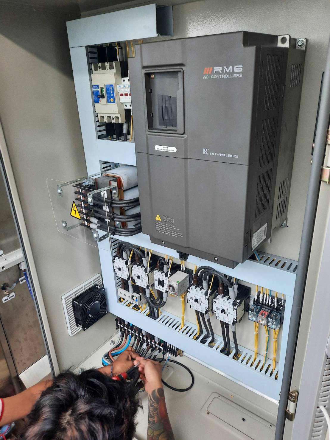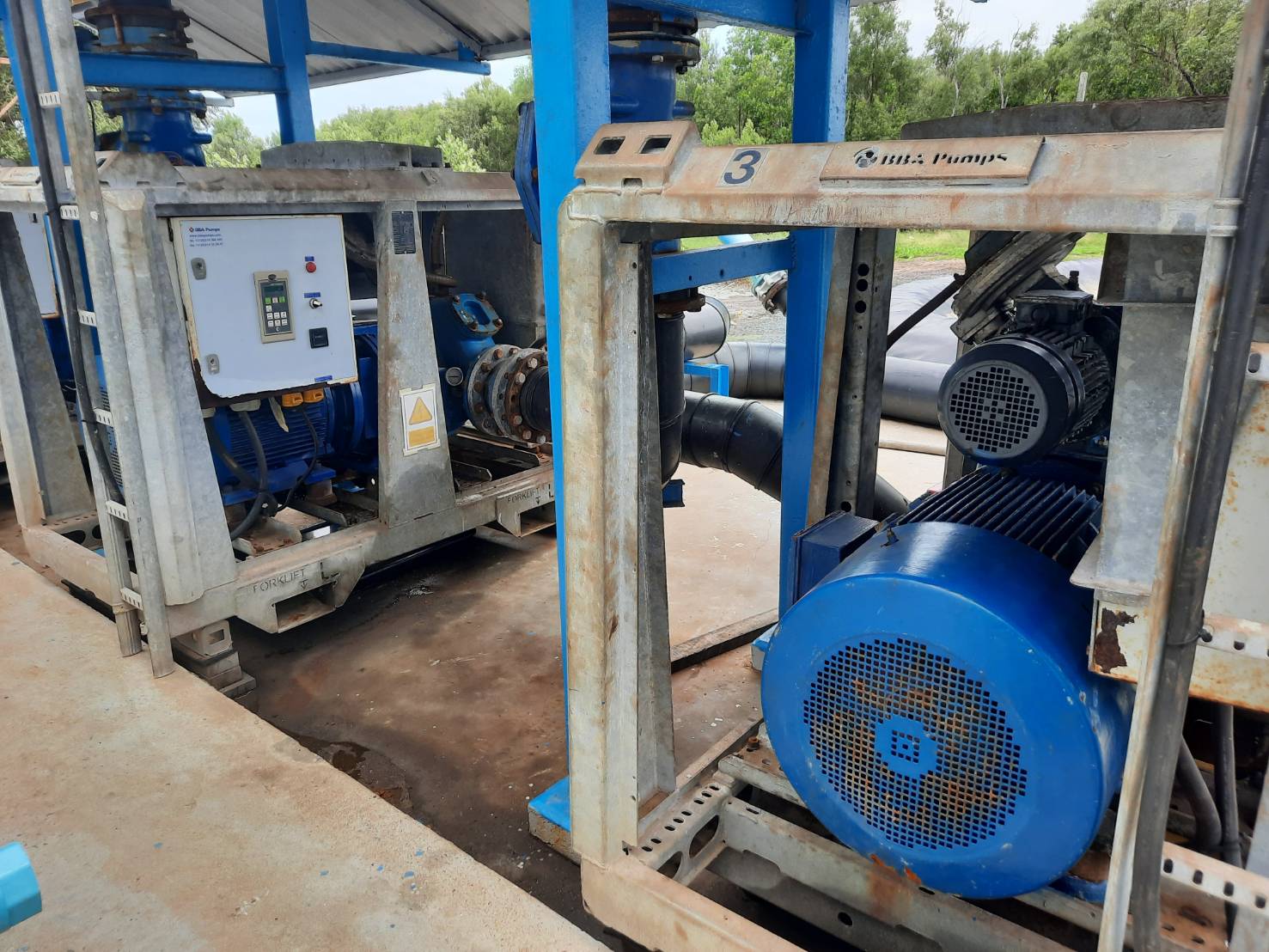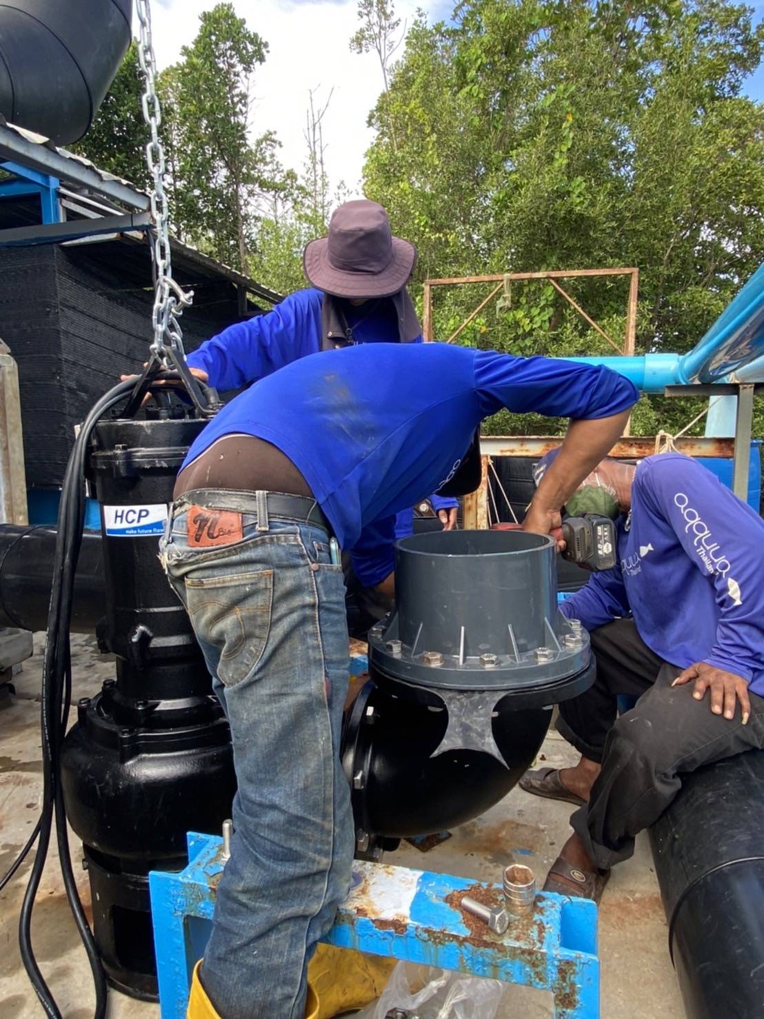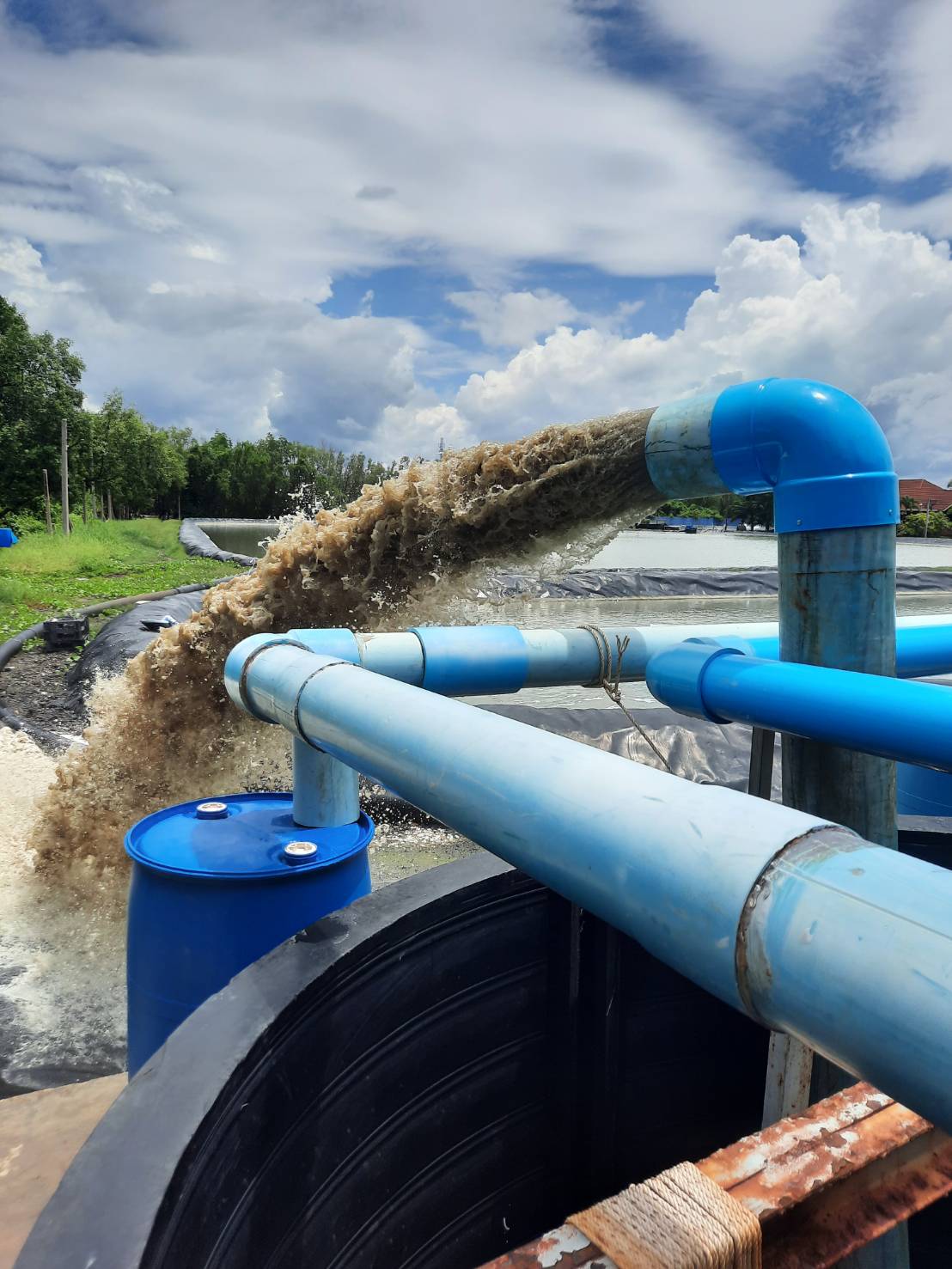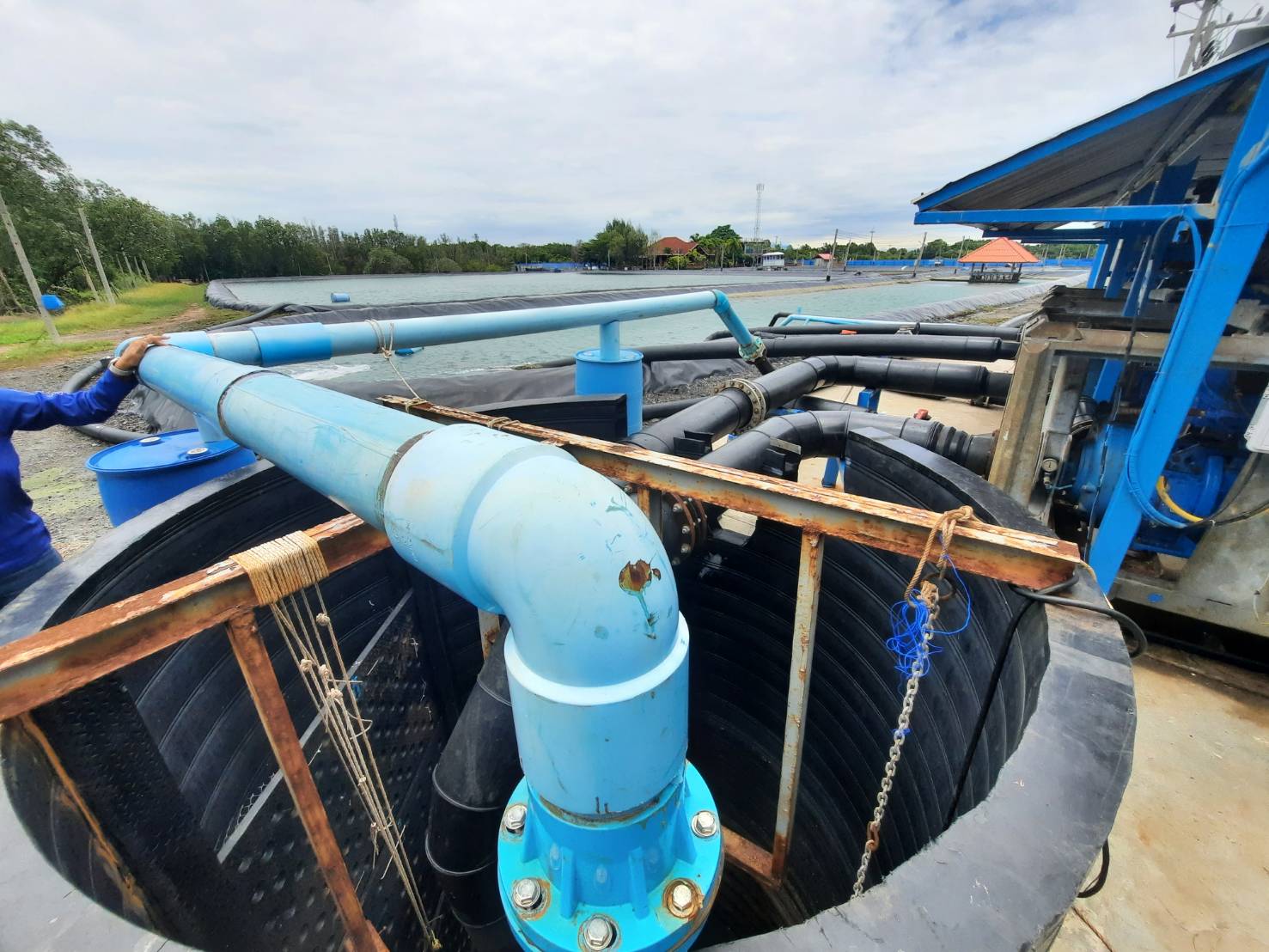 ลูกค้าต้องการสูบส่งน้ำจากบ่อเก็บน้ำเข้าสู่บ่อเลี้ยงจากเดิมลูกค้าใช้เป็นปั๊มประเภท Centrifugal Pump (ปั๊มหอยโข่ง) ขนาด 45Kw/60HP ปริมาณน้ำ 650 m3/hr ซึ่งเป็นปั๊มขนาดใหญ่ใช้พลังงานสูง ต้องการลดต้นทุนด้านพลังงานจึงเปลี่ยนมาใช้ปั๊มรุ่น 200(250)AFE430 ท่อขนาด 10 นิ้ว 30Kw/40HP โดยควบคุมความเร็วรอบของปั๊มด้วย Inverter นอกจากจะควบคุมรอบขอมอเตอร์แล้วระบบ Inverter ยังมีฟังชันก์ป้องกันมอเตอร์เช่น ป้องกันไฟกระชาก ป้องกันมอเตอร์อุณหภูมิสูง และ ยังช่วยลดกระแสร์ไฟขอมอเตอร์ได้อีกด้วย