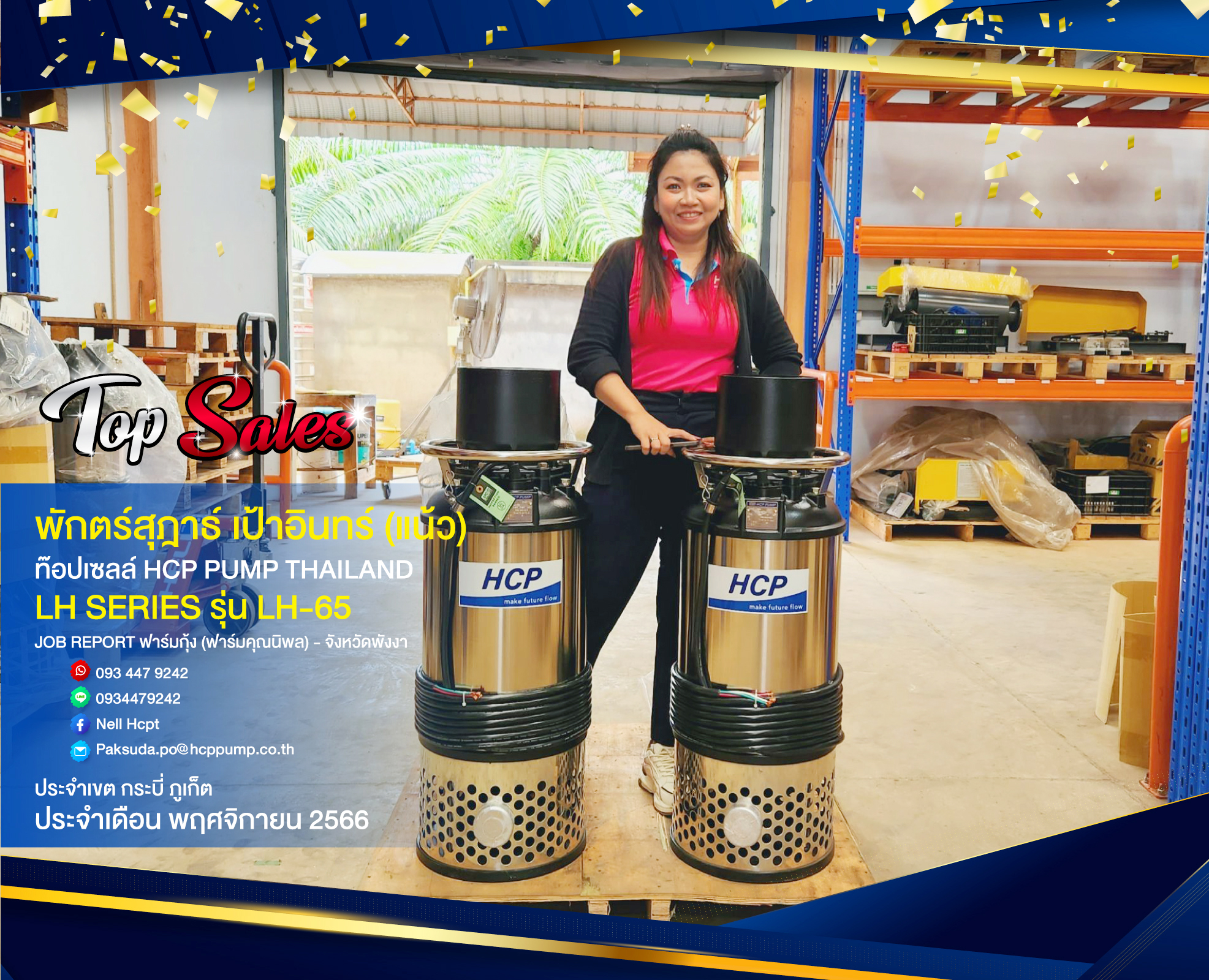 เนื่องจากทางฟาร์มมีการใช้ปั้มน้ำหลายตัวเพื่อเติมน้ำเข้าบ่อพัก 2บ่อ บ่อเลี้ยง 4 บ่อ ซื่งใช้ปั๊ม 10 นิ้ว 6 นิ้ว และได้เลือกใช้ปั้มน้ำที่มีขนาดท่อส่ง 6 นิ้ว(LH-65) คู่กับ 10 นิ้ว(L-250) เพื่อต้องการสูบน้ำจากบ่อพักน้ำและ เข้าบ่อเลี้ยงกุ้ง ผ่านทางรางน้ำ ที่อยู่ตรงกลาง ระหว่าง บ่อเลี้ยง และ บ่อพักน้ำ ด้วยระยะส่งประมาณ 40 เมตร โดยปั้มรุ่น LH-65 ซึ่งมีขนาด 6 นิ้ว 5แรง และได้ปริมาณน้ำ 120 คิวต่อ ชั่วโมง กินไฟ 8.8 A. ซึ่งสามารถตอบโจทย์ความต้องการของลูกค้าได้เป็นอย่างดี