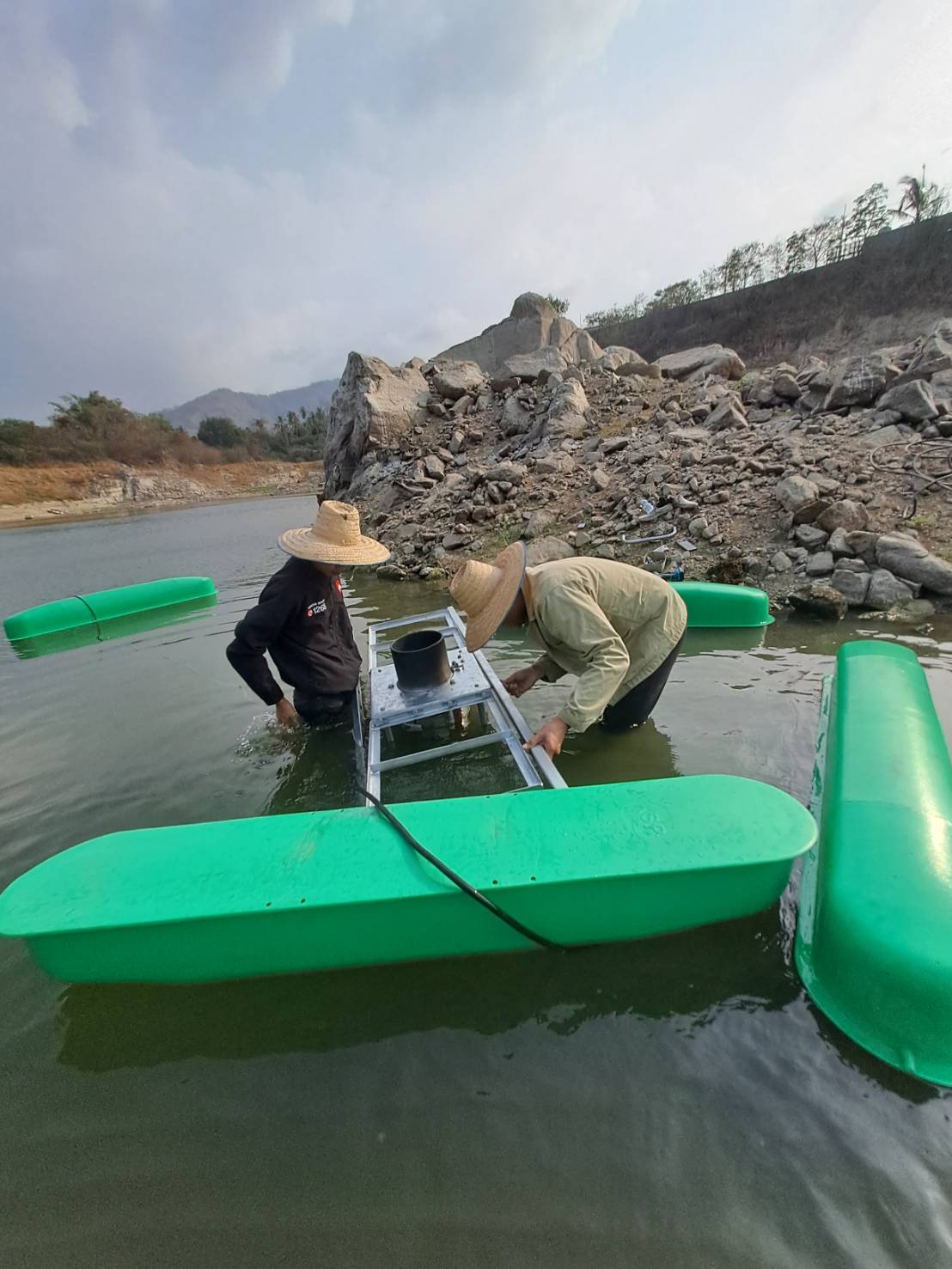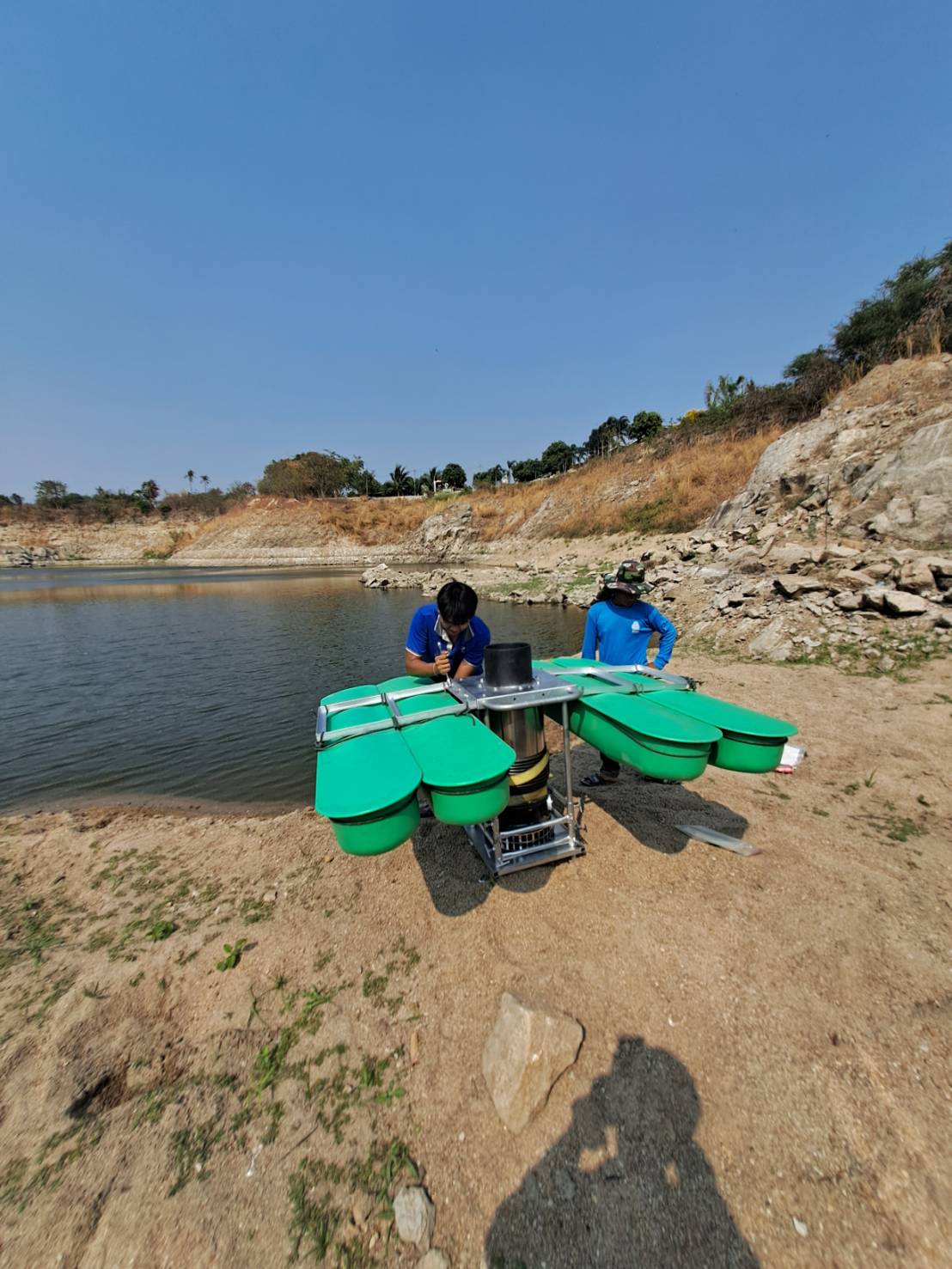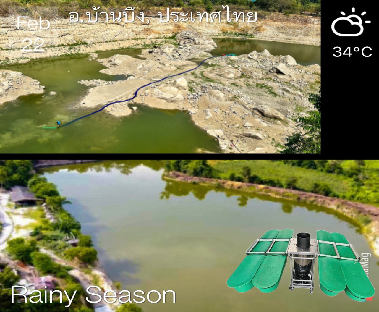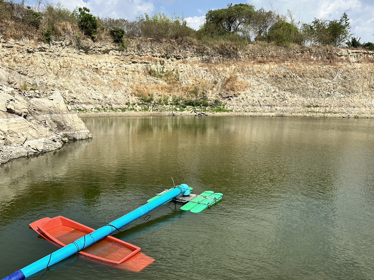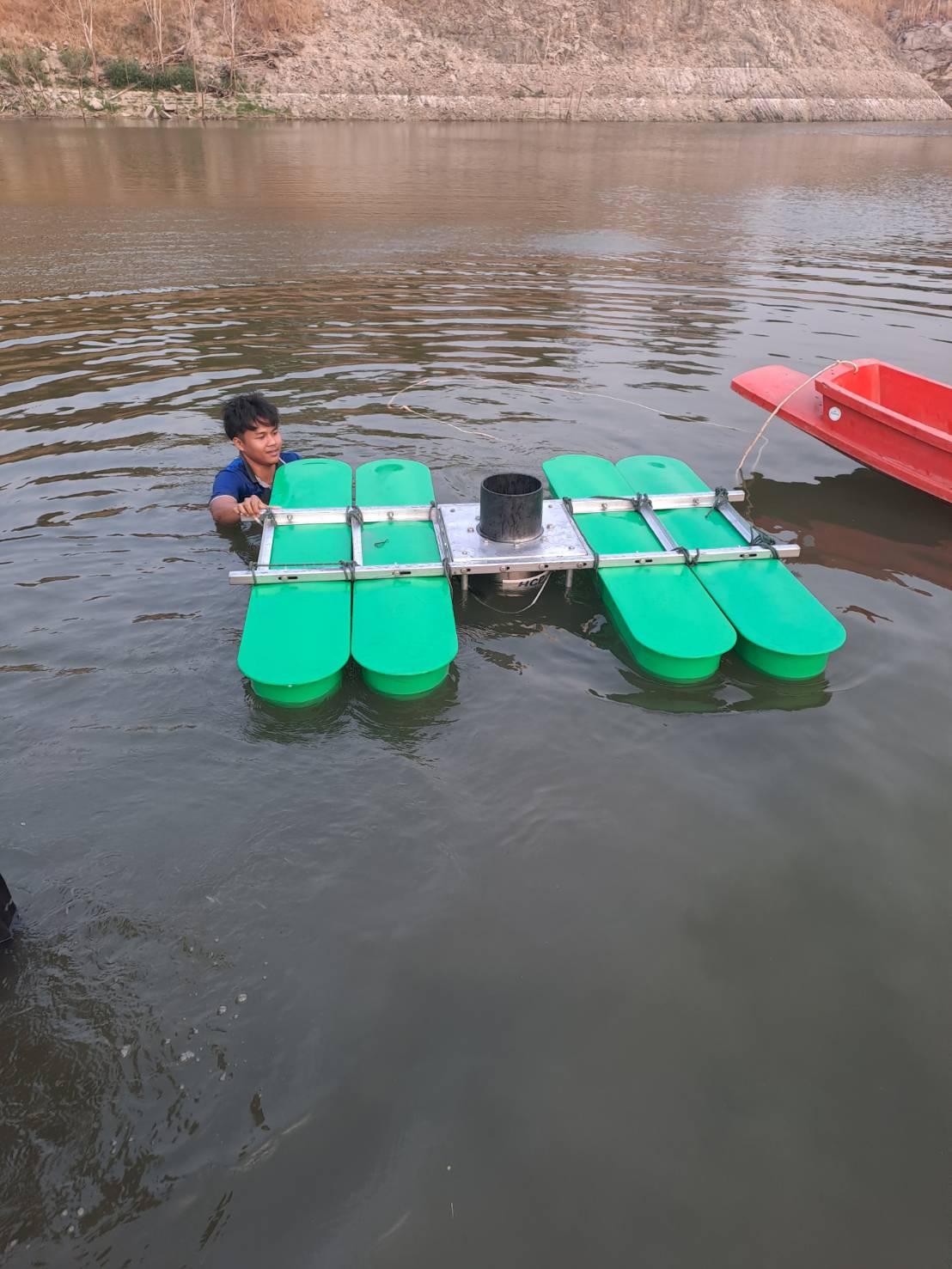 เนื่องจากปริมาณน้ำในบ่อจะเพิ่ม/ลด ตลอดทั้งปีจึงได้ออกแบบติดตั้งปั๊มกับโครงสร้างรถยึดติดกับทุ่นเพื่อที่จะสามารถเคลื่อนย้ายได้และสามารถปรับลดตามระดับน้ำตามความต้องการของลูกค้า