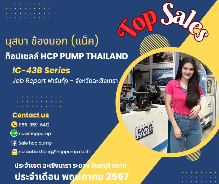 รายละเอียดการติดตั้ง : จากเดิมที่ลูกค้าใช้ปั๊มหาง 4 นิ้ว มอเตอร์ขนาด 7.5 แรง กินไฟ 8 แอมป์ ลูกค้าดูดน้ำเข้าบ่อซึ่งมีระยะส่ง 30 เมตร ลูกค้าเลยใช้ลองเปลี่ยนมาใช้ปั๊ม Submersible ของแบรนด์ HCP PUMP รุ่น IC-43B ขนาด 4 นิ้ว 3 แรงม้า ซึ่งกินไฟเพียงแค่ 4.3 แอมป์ เมื่อเทียบปริมาณน้ำแล้วปั๊มของHCPแรงม้าน้อยกว่า กินไฟน้อยกว่า แต่ได้ปริมาณน้ำเทียบเท่ามอเตอร์ 7.5 แรง และขณะการใช้งานไม่มีเสียงดังรบกวนเงียบสนิท ลูกค้าจึงพึงพอใจมาก และได้มีการเปลี่ยนมาใช้ปั๊มรุ่น IC-43B ของ HCP แทนปั๊มหางเป็นจำนวนมาก