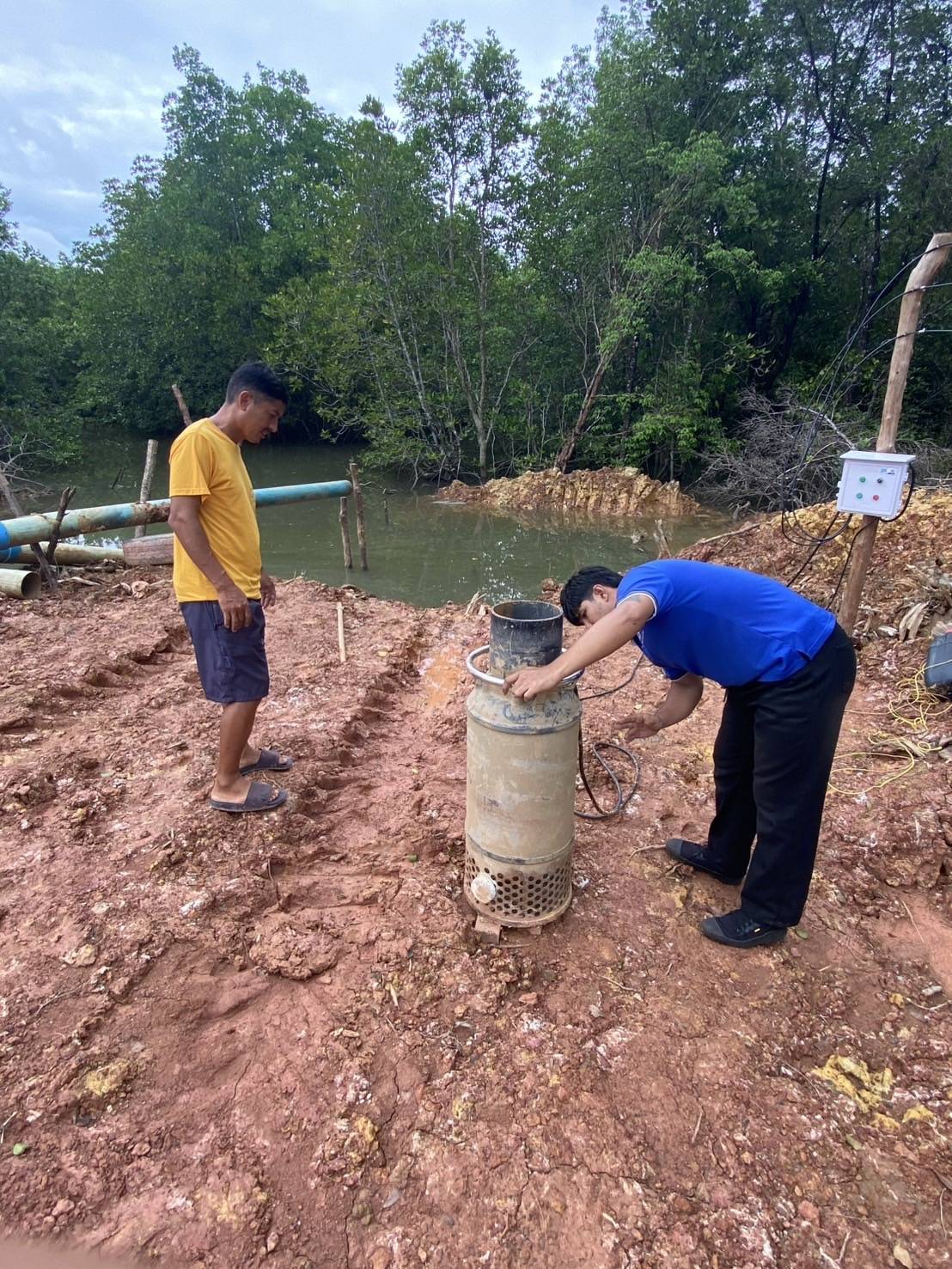 เนื่องจากทางฟาร์มมีปัญหาน้ำไม่เพียงพอ เพราะเวลาน้ำขึ้นน้ำลงไม่เป็นปกติ  จึงต้องการ สวิตช์ลูกลอย อุปกรณ์ที่ช่วยอำนวยความสะดวก เพื่อที่จะสูบน้ำ เพราะต้องสูบน้ำตามเวลาน้ำขึ้นน้ำลงของป่าชายเลน มีระยะส่งต่อเข้าบ่อพัก 5 เมตร จึงแนะนำให้เลือกใช้ปั๊ม HCP รุ่น  LH-88 พร้อมสวิตย์ลูกลอย ซึ่งมีขนาด 8 นิ้ว 8 แรง การวางปั๊มอยู่ที่เฮด 4 เมตร และได้ปริมาณน้ำ 250 คิวต่อชั่วโมง ซึ่งปริมาณการกินกระแสไฟ ประมาณ 12 แอมแปร์(A) และ ตอบโจทย์ความต้องการของลูกค้าได้เป็นอย่างดี และถือว่าเป็นการแก้ไขปัญหาเรื่องเวลาน้ำขึ้นน้ำลงของแหล่งน้ำได้เป็นอย่างดี