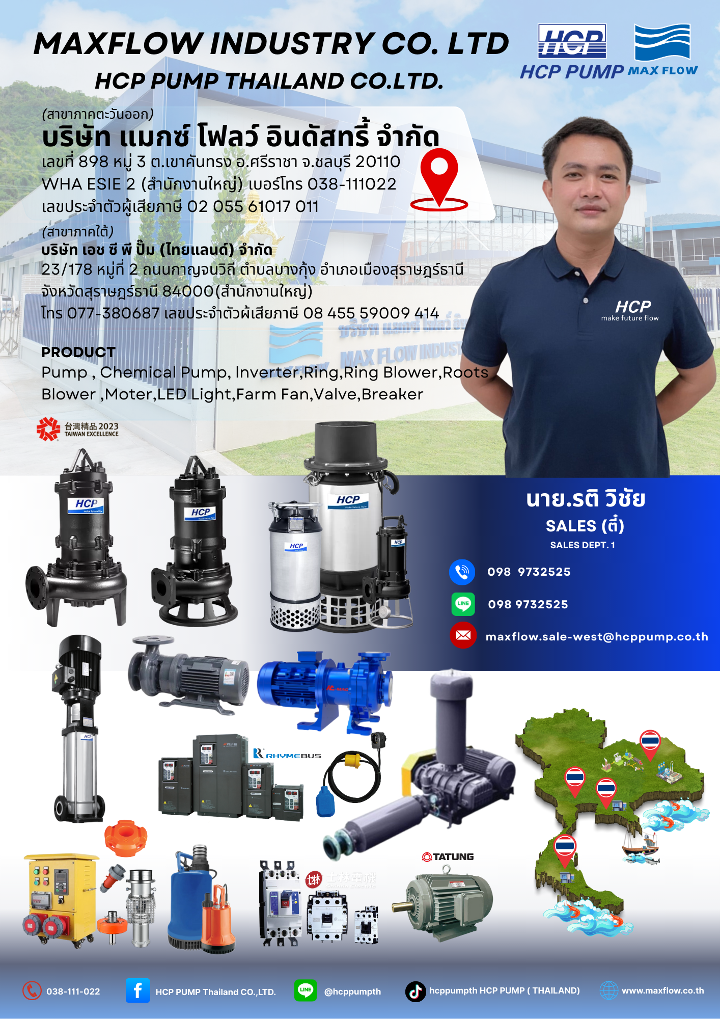 จากเงื่อนไขการใช้งานดังกล่าวจึงได้เลือกใช้ปั๊มน้ำรุ่น IC-45B ของ HCP ซึ่งเป็นปั๊มชนิดSubmersible Pump ขนาดท่อส่ง 100 มิลลิเมตร (4 นิ้ว)ใช้กำลังมอเตอร์ 3.7 กิโลวัตต์ (5 แรงม้า) รองรับระบบไฟฟ้ า 50 Hz / 3 Phase / 380 V / 2 Pole โดยปั๊มรุ่นนี้มีอัตราการไหลมาตรฐาน (Standard Capacity) ที่ 60 ลูกบาศก์เมตรต่อชั่วโมงและให้ประสิทธิภาพการทำงานสูงถึง 60.9% เหมาะสำหรับงานสูบน้ำทะเลและงานระบบที่ต้องการความเสถียรในการทำงาน