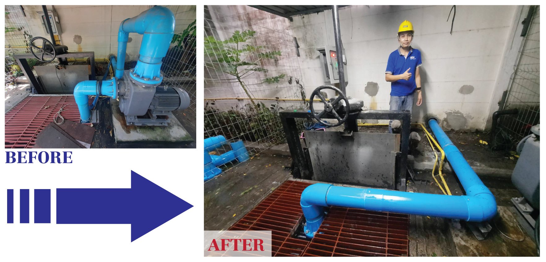 จากการติดตั้งปั๊มน้ำ HCPPUMP รุ่น L-63A 6” 3HP เฮดประมาณ 1 เมตร ได้ปริมาณน้ำประมาณ 160 m3/hr ปั๊มทำงานเงียบไม่มีเสียงดัง ประหยัดพลังงานซึ่งจากเดิมใช้มอเตอร์ถึง 15 แรงม้า ติดตั้งง่าย ใช้พื้นที่น้อย ในกรณีน้ำท่วมสูงปั๊มยังสามารถทำงานได้ดีไม่ได้รับความเสียงาน