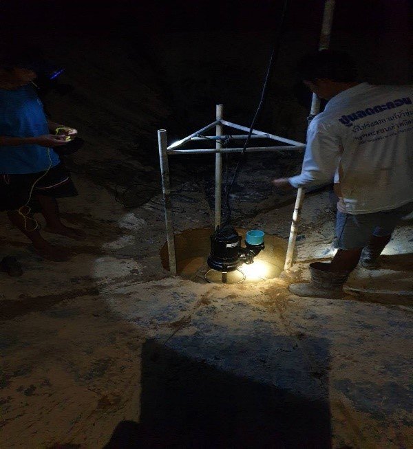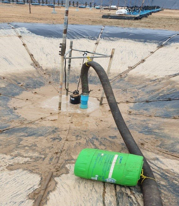 เนื่องจากเดิมลูกค้าใช้ปั๊มหางในการดูดเลนจากบ่อเลี้ยงแล้วเกิดความยุ่งยากในการติดตั้งดูแลจึงอยากเปลี่ยนกปั๊มเพื่อให้ดูแลง่ายขึ้น และมีข้อจำกัดในการใช้จำนวนแอมแปร์ (A) ของไฟฟ้า เลยแนะนำปั๊มจุ่มรุ่น FN-35P-A1 (380V) ซึ่งมีขนาด 3 นิ้ว 5 แรง ในการดูดเลนที่มีความสูงเพียง 2 เมตร และระยะส่งน้ำเข้าบ่อเลี้ยงเพียง 80 เมตร ส่วนกระแสไฟฟ้าวัดได้ ประมาณ 8 - 10 แอมแปร์ (A)