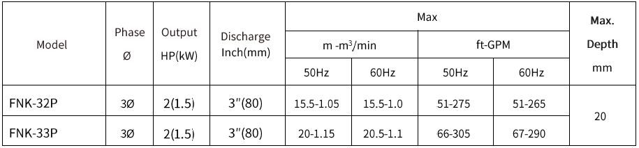 2. FNK Series lightweight, portable, New 3” Vertical Discharge. Maximum 50mm Solid Passage (FN-32U/33U).