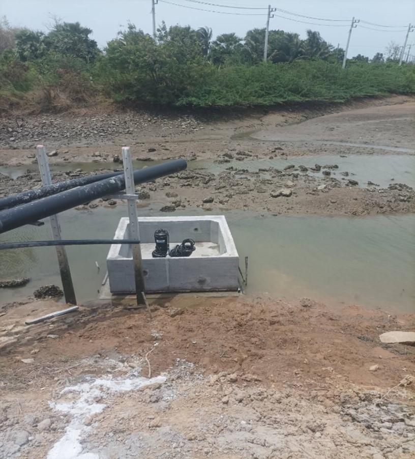 รายละเอียดการติดตั้ง : ลูกค้าต้องการดูดน้ำทะเล ซึ่งมีระยะเวลาในการดูดน้ำ 1 วัน แค่ 4-5 ชั่วโมง ต้องการปริมาณน้ำ 450 คิว / ชั่วโมงขึ้นไป และ มีระยะทาง ส่งไกล 900 เมตร ระดับความสูง 3 เมตร ลูกค้าเดินท่อฝังใต้ดินเพราะตำแหน่งที่วางปั๊ม เป็นพื้นที่สาธารณะ จึงได้เลือกปั๊ม 200(250)AFE430 10 นิ้ว 40 แรง ซึ่งสามารถดูดน้ำได้ปริมาณมาก ถึง 624 คิว / ชั่วโมง และ ลูกค้าได้ติดตั้งท่อสูงเพื่อกั้นน้ำไหลกลับมาที่ตัวปั๊ม และตำแหน่งที่วางปั๊ม จะมีเวลาน้ำขึ้นลง เพื่อยึดอายุการใช้งานให้นานขึ้นจึงต้องทำอ่างปูนเพื่อให้ปั๊มแช่น้ำตลอดเวลา  เวลาน้ำทะเลลดลง ปั๊ม 200(250)AFE430 มีแรงม้า 40 แรง แต่หลังจากติดตั้งและเปิดใช้งาน ปั๊มกินไฟแค่เพียง 53.2 แอมป์ ซึ่งกินไฟน้อยมากถ้าเทียบกับมอเตอร์ 40 แรงทั่วไป