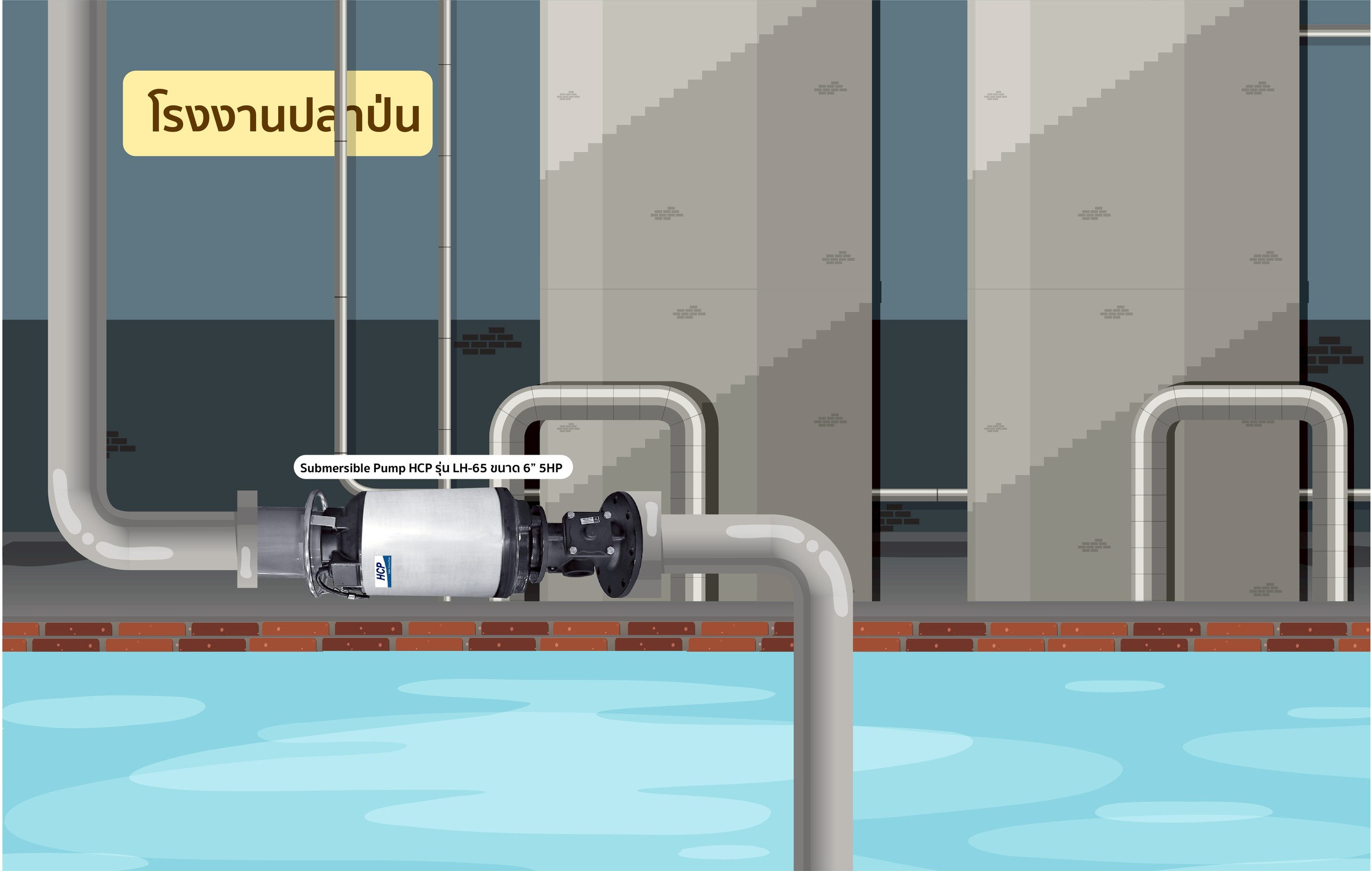 โรงงานได้ปรับเปลี่ยนมาใช้ปั๊มจุ่ม แบรนด์ HCP รุ่น LH-65ขนาด 6” 5HP โดยมีคุณสมบัติที่เหมาะสมกับงาน