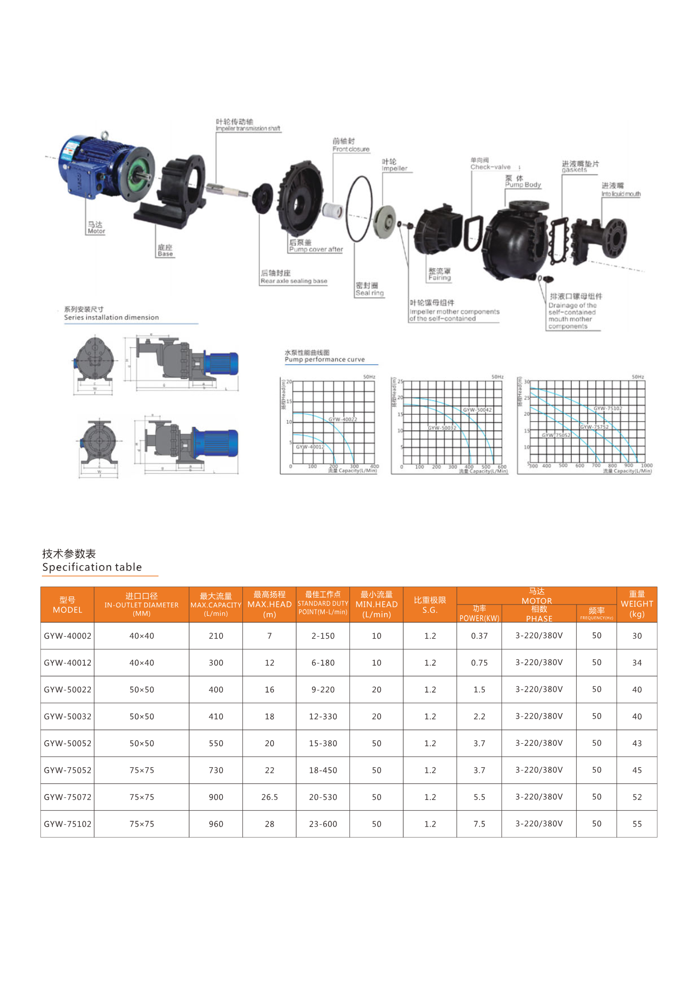 สามารถสูบเคมีได้และสามารถรองรับอุณหภูมิได้ 95°C รองรับมอเตอร์มาตรฐาน IEC ในช่วงไฟ 0.37–7.5 kW