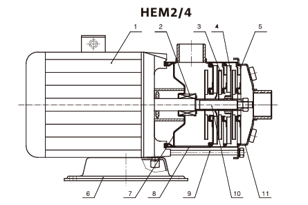ปั๊มน้ำแบบแรงเหวี่ยงหลายขั้นตอนแนวนอนชนิดไม่ดูดน้ำเอง (HHM/HEM series) สามารถเคลื่อนย้ายของเหลวได้อย่างมีประสิทธิภาพด้วยแรงเหวี่ยงที่เกิดจากใบพัดที่หมุน มอเตอร์ที่ออกแบบเฉพาะของปั๊มเชื่อมต่อใบพัดและใบพัดนำทางผ่านซีลเชิงกลที่ติดตั้งบนเพลามอเตอร์ ทั้งหมดถูกติดตั้งอย่างมั่นคงบนแผ่นฐานเพื่อความเสถียร