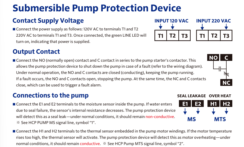 - ขนาดกะทัดรัด ออกแบบมาเป็นพิเศษสำหรับปั๊มน้ำแบบแช่ เพื่อเพิ่มความปลอดภัยทั้งต่อปั๊มและช่างเทคนิค
