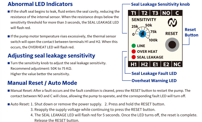 - ตรวจสอบปั๊มน้ำแบบแช่เพื่อป้องกันความร้อนสูงเกินไปและการรั่วซึมของซีล อุปกรณ์ได้รับการรับรองมาตรฐาน UL